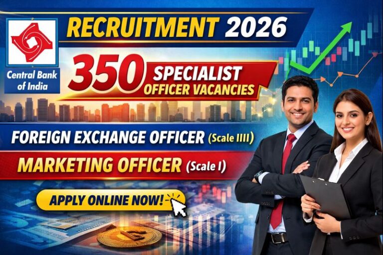 Central Bank of India Recruitment 2026 – 350 Specialist Officer Vacancies (Forex Officer Scale III & Marketing Officer Scale I)
