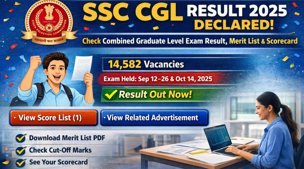 SSC CGL Result 2025, SSC Result 2025, SSC CGL Merit List, SSC Scorecard Download, SSC CGL Cut Off 2025, SSC Latest Result, Government Job Result India, SSC CGL 14582 Vacancies